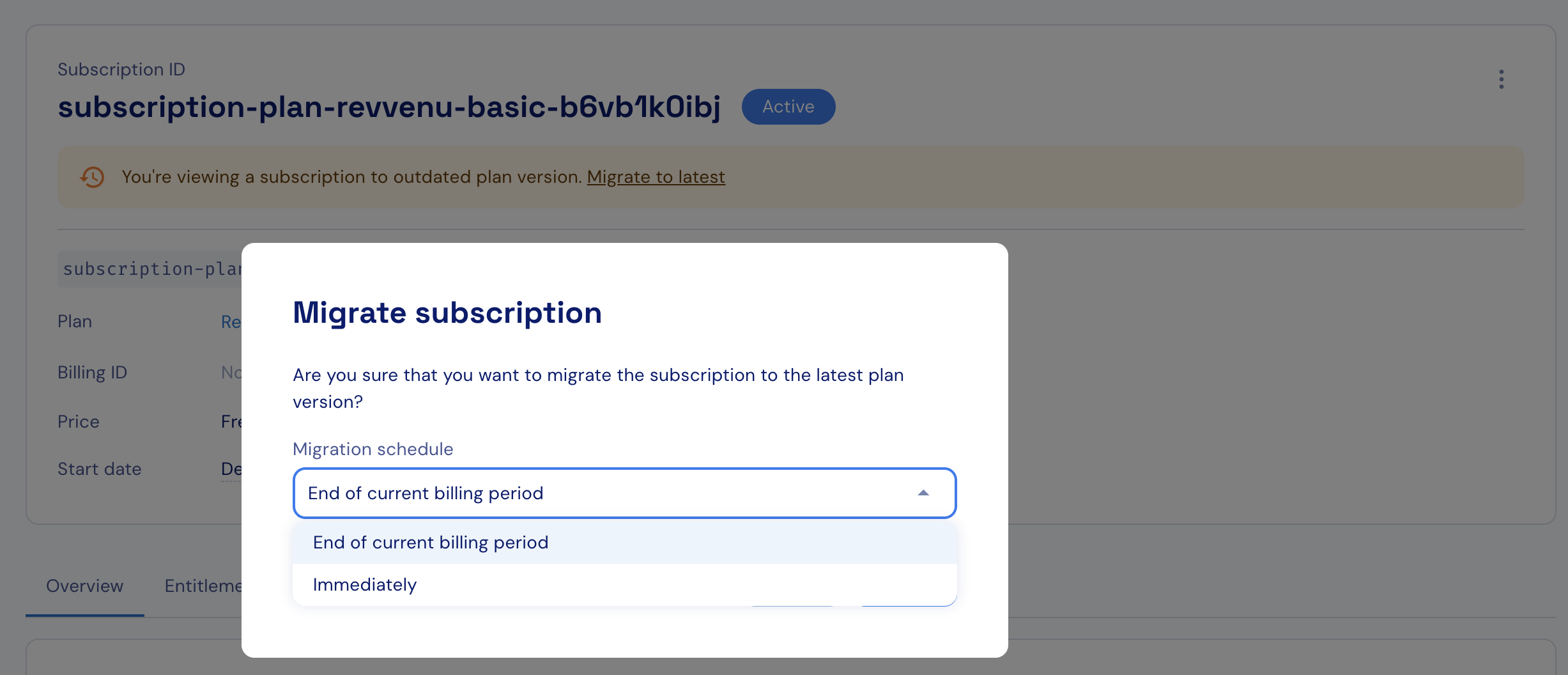 Migrating subscriptions to the latest plan or add-on version