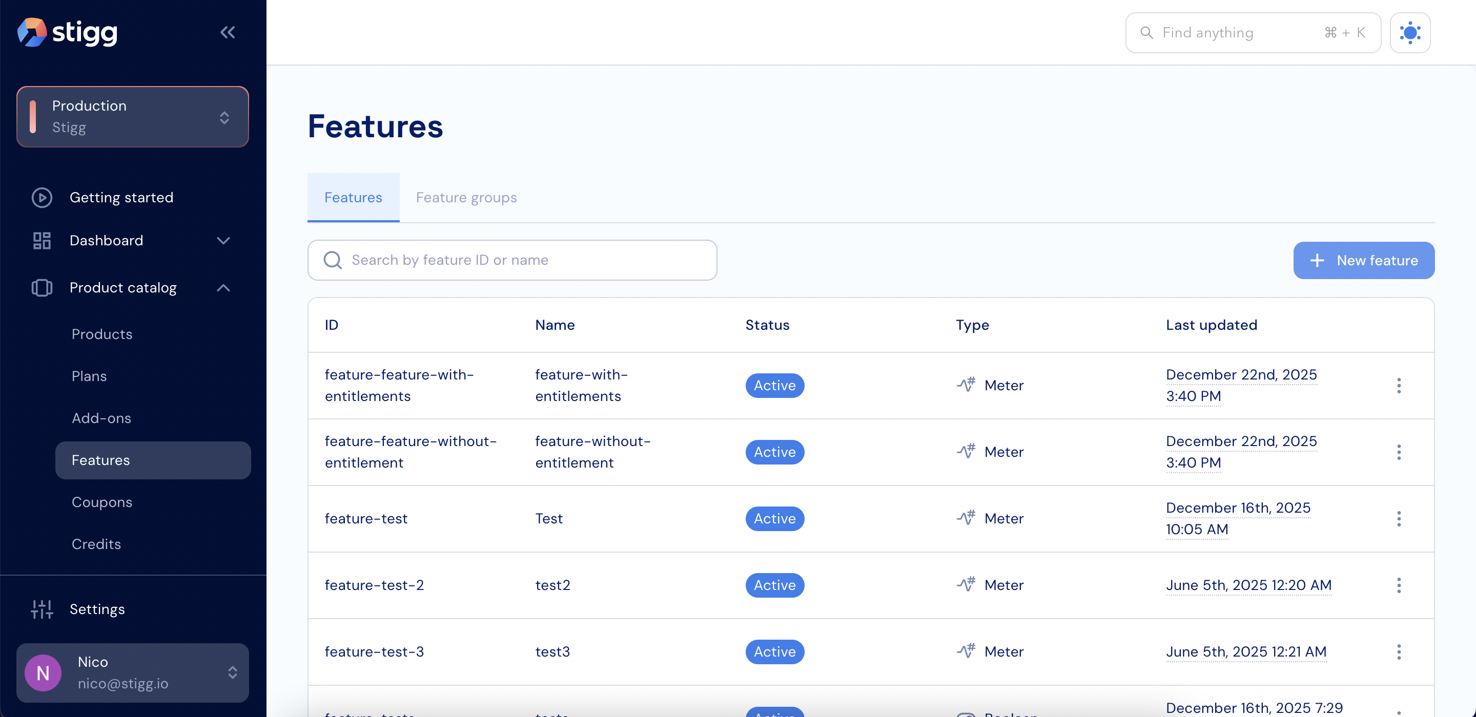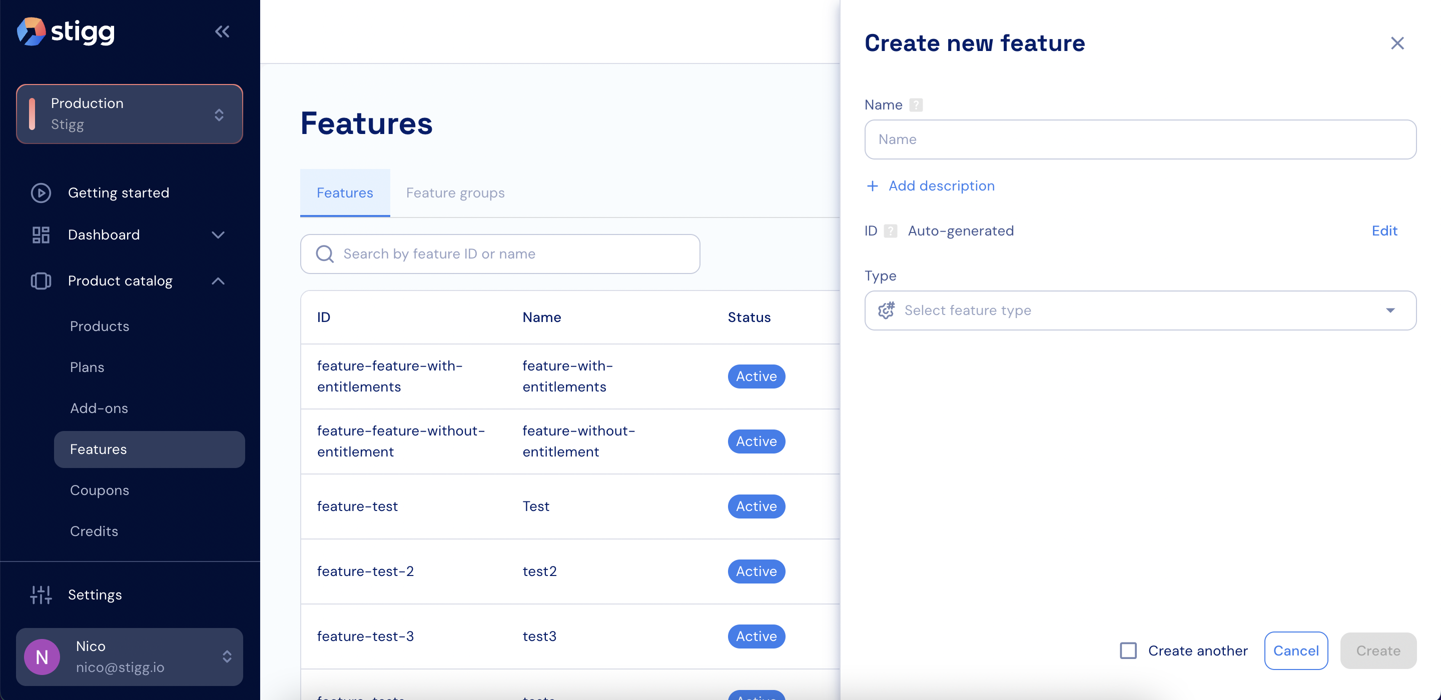 - Open the Product catalog in the Stigg Console.