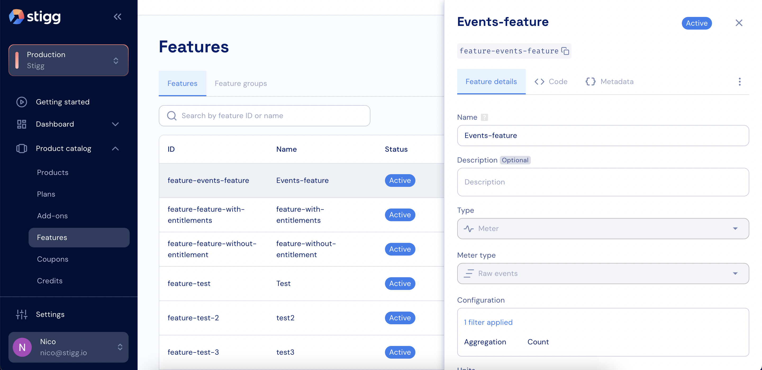 Some properties of a feature (for example: its ID), cannot be modified after the feature is created or when the feature is already in-use by a plan or add-on.