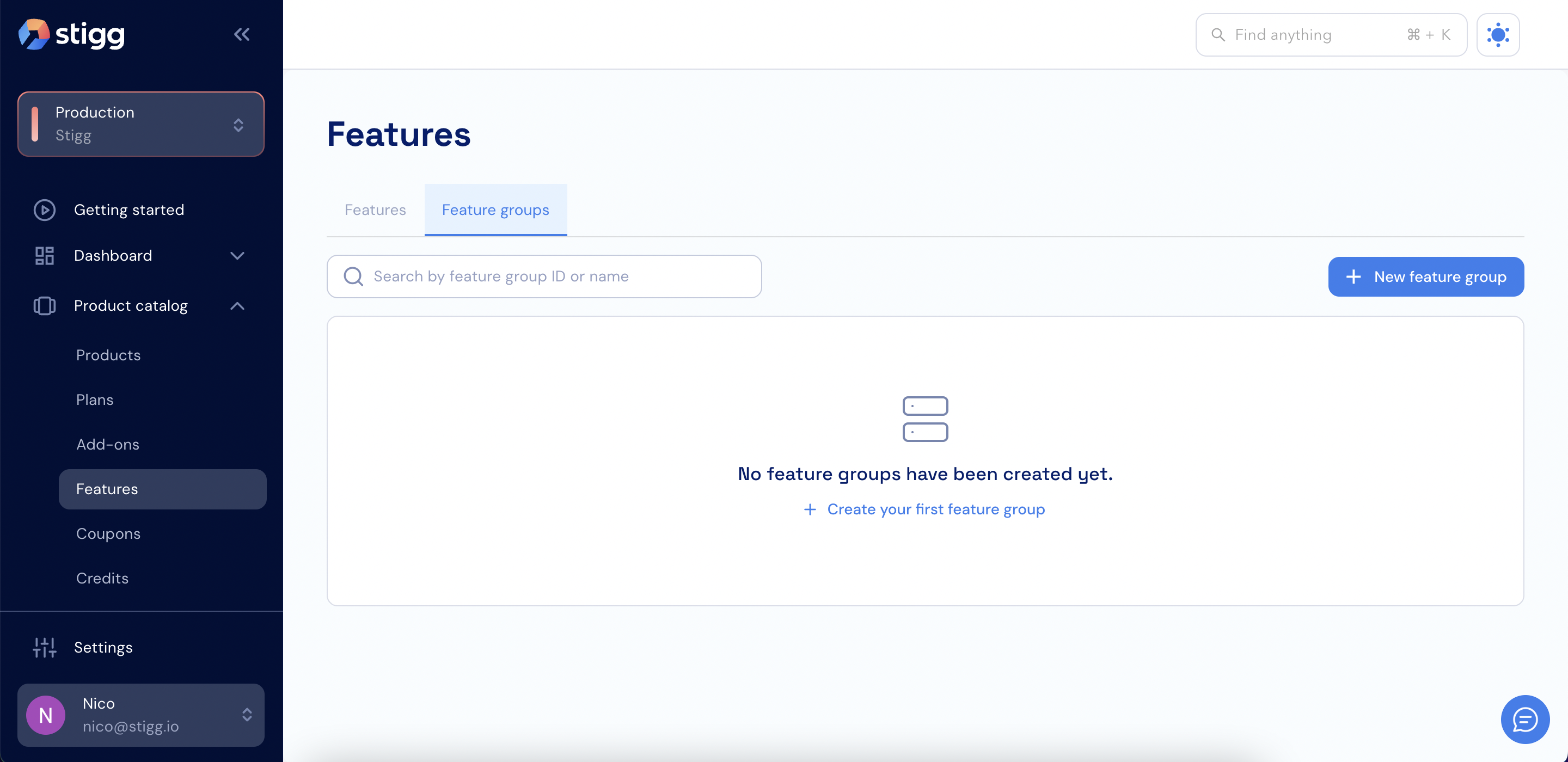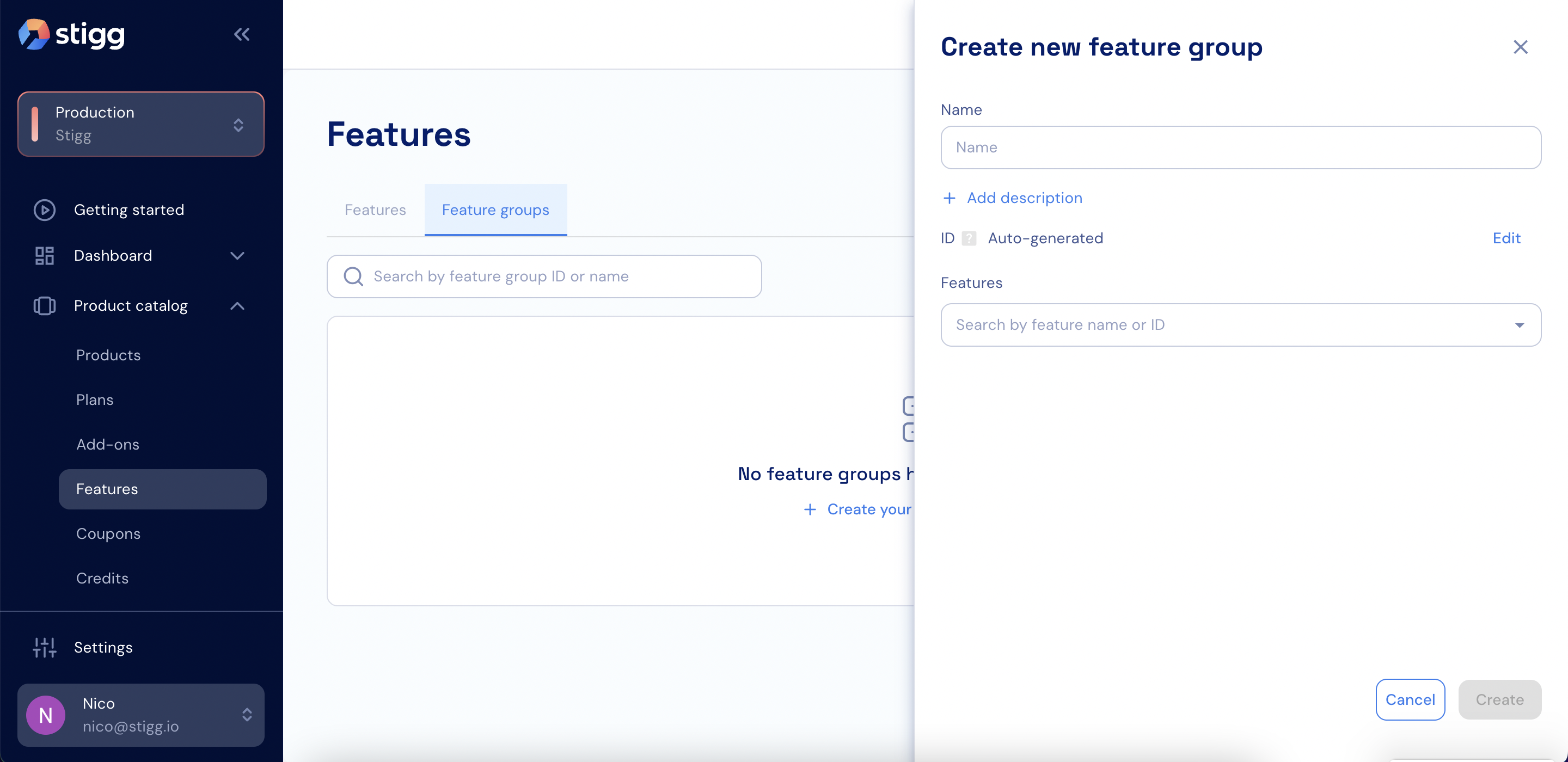 - Open the Product catalog in the Stigg Console.