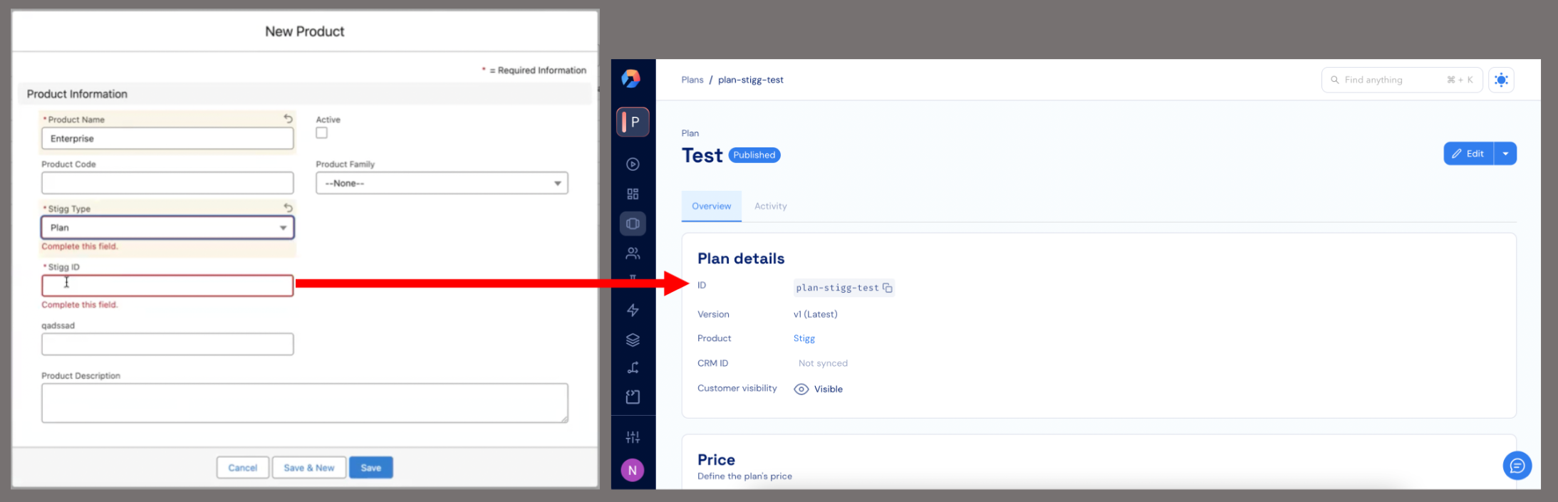 - Add the Salesforce product that refers to the paid plan in Stigg