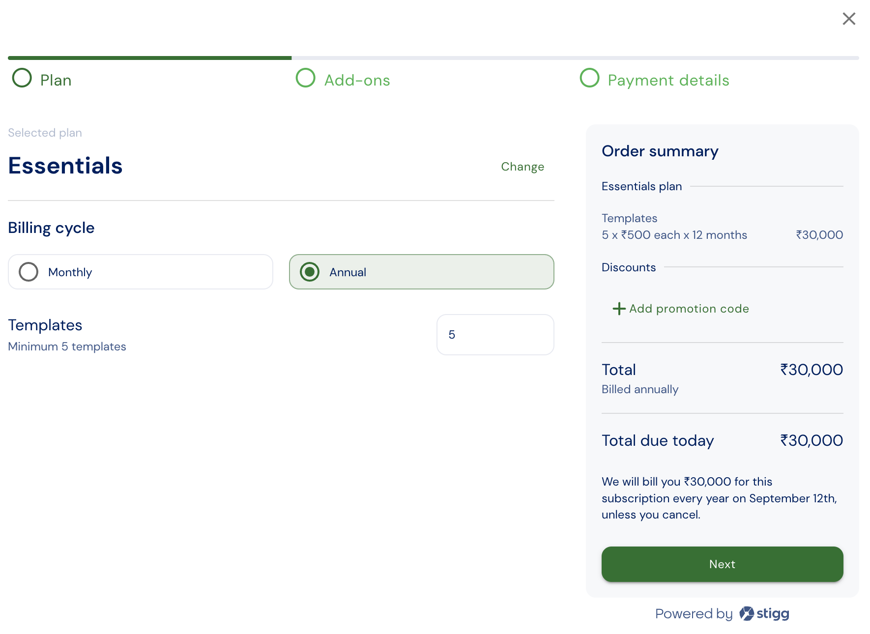 In order to future-proof your public website and application for price localization, it’s recommended to implement these changes as part of your initial integration with Stigg. Doing so will allow you to introduce and rollout changes to the price localization configuration, without requiring any additional code changes.- When no localized pricing is defined for a specified country, the default pricing will be used.