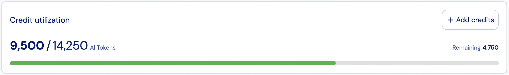 1,250 / 6,000 AI Tokens). - Remaining balance — highlights credits still available.