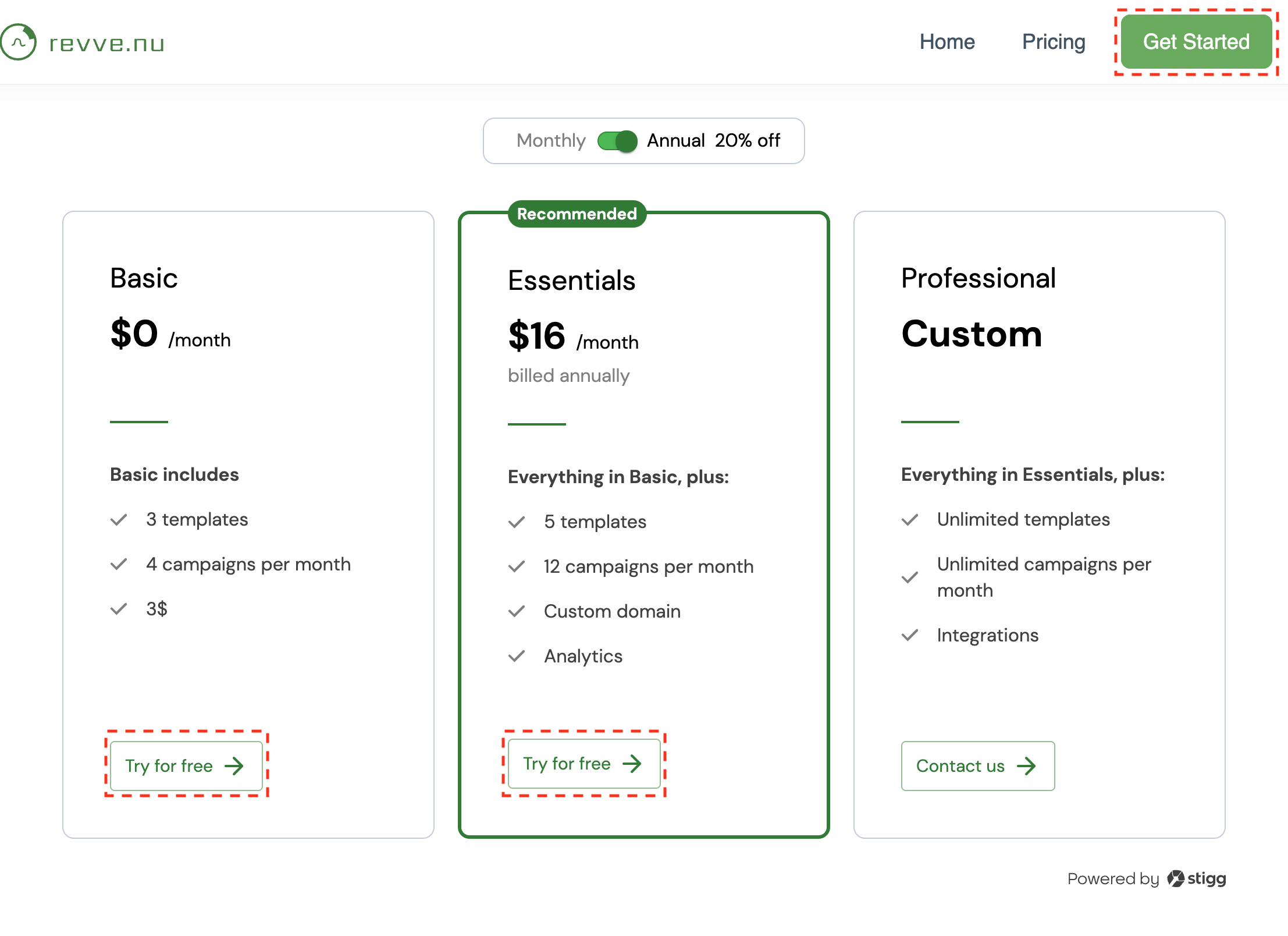 Stigg allows you to control the behavior at the end of the trial. Specifically, this allows you to configure whether a free trial or reverse trial flow will be implemented.Free trial