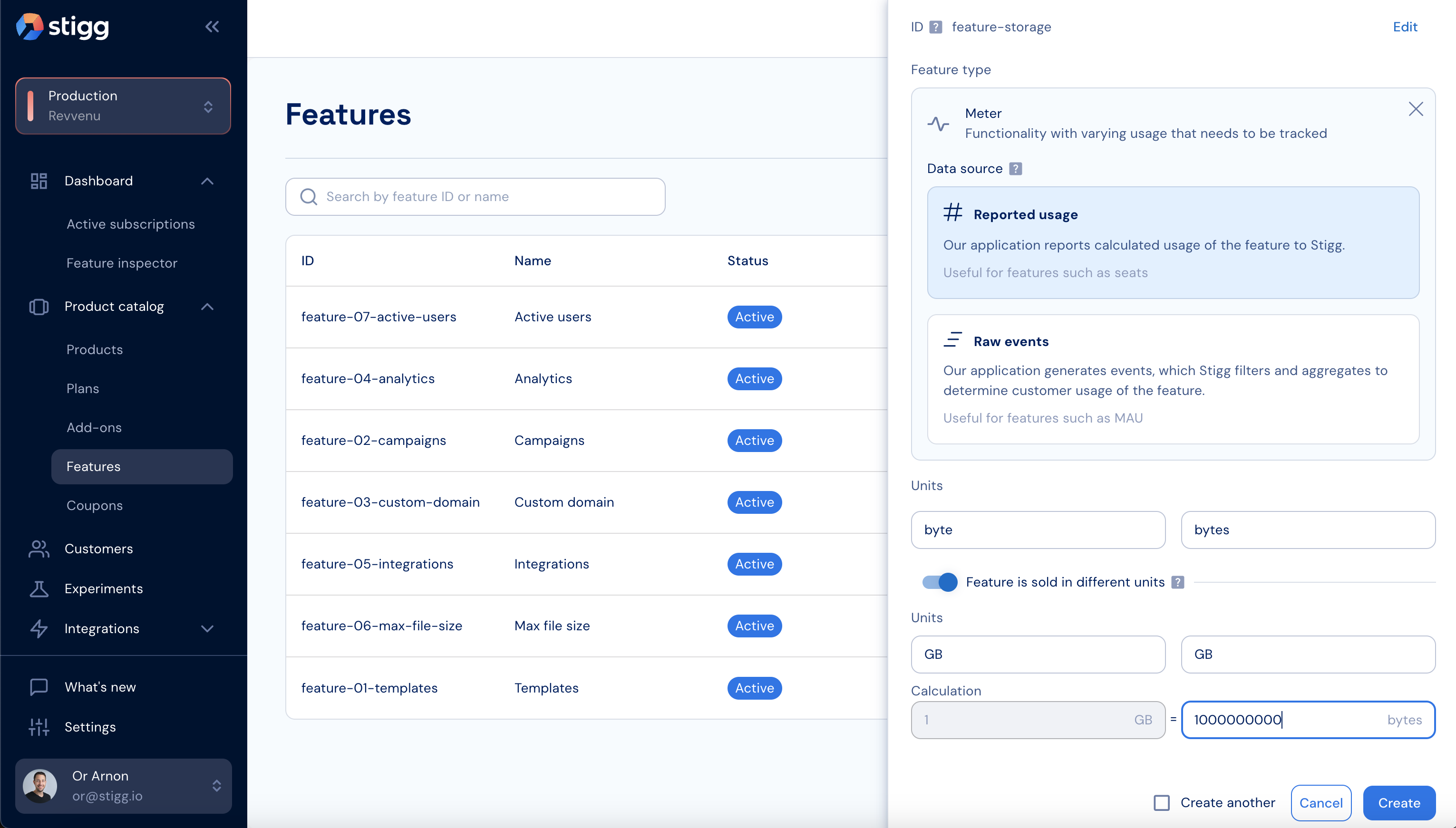 Stigg allows you to report usage in a high granularity (for example: bytes) and present it customers in a different granularity (for example: GB).